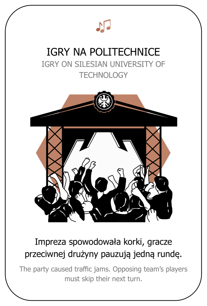Karty funkcyjne przedstawiające liczne wydarzenia, których możemy doświadczyć w Gliwicach